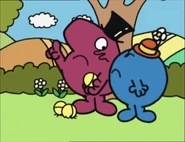 Mr. Tickle(TV Shows)(The Mr. Men Show) ยท Mr. Greedy(TV Shows) ยท Mr. Happy(TV Shows)(The Mr. Men Show) ยท Mr. Nosey(TV Shows)(The Mr. Men Show) ยท Mr. Sneeze(TV Shows) ยท Mr. Bump(TV Shows)(The Mr. Men Show) ยท Mr. Snow(TV Shows) ยท Mr. Messy(TV Shows)(The Mr. Men Show) ยท Mr. Topsy-Turvy(TV Shows) ยท Mr. Silly(TV Shows) ยท Mr. Snooty(TV Shows) ยท Mr. Small(TV Shows)(The Mr. Men Show) ยท Mr. Daydream(TV Shows) ยท Mr. Forgetful(TV Shows) ยท Mr. Jelly(TV Shows)(The Mr. Men Show) ยท Mr. Noisy(TV Shows)(The Mr. Men Show) ยท Mr. Lazy(TV Shows)(The Mr. Men Show) ยท Mr. Funny(TV Shows)(The Mr. Men Show) ยท Mr. Mean(TV Shows) ยท Mr. Chatterbox(TV Shows) ยท Mr. Fussy(TV Shows)(The Mr. Men Show) ยท Mr. Bounce(TV Shows)(The Mr. Men Show) ยท Mr. Muddle(TV Shows) ยท Mr. Dizzy(TV Shows) ยท Mr. Impossible(TV Shows) ยท Mr. Strong(TV Shows)(The Mr. Men Show) ยท Mr. Grumpy(TV Shows)(The Mr. Men Show) ยท Mr. Clumsy(TV Shows) ยท Mr. Quiet(TV Shows)(The Mr. Men Show) ยท Mr. Rush(TV Shows) ยท Mr. Tall(TV Shows)(The Mr. Men Show) ยท Mr. Worry(TV Shows) ยท Mr. Nonsense(TV Shows) ยท Mr. Wrong(TV Shows) ยท Mr. Skinny(TV Shows) ยท Mr. Mischief(TV Shows) ยท Mr. Clever(TV Shows) ยท Mr. Busy(TV Shows) ยท Mr. Slow(TV Shows) ยท Mr. Brave(TV Shows) ยท Mr. Grumble(TV Shows) ยท Mr. Perfect(TV Shows) ยท Mr. Cheerful(TV Shows) ยท Mr. Cool(TV Shows) ยท Mr. Rude(TV Shows)(The Mr. Men Show) ยท Mr. Good(TV Shows) ยท Mr. Nobody(TV Shows) ยท Mr. Marvelous(TV Shows) ยท Mr. Adventure ยท Mr. Calm(TV Shows) ยท Mr. Fib