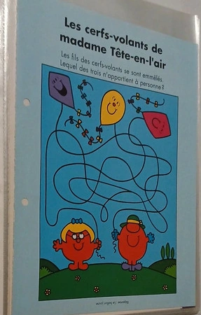 Little Miss Scatterbrain's Kites (Les cerfs-volants de madame Tête-en-l'air in French) is the ending activity of Issue #11 in the I Grow Up with the Mr. Men and Little Miss series.