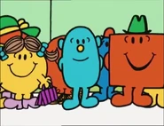 Mr. Tickle(TV Shows)(The Mr. Men Show) ยท Mr. Greedy(TV Shows) ยท Mr. Happy(TV Shows)(The Mr. Men Show) ยท Mr. Nosey(TV Shows)(The Mr. Men Show) ยท Mr. Sneeze(TV Shows) ยท Mr. Bump(TV Shows)(The Mr. Men Show) ยท Mr. Snow(TV Shows) ยท Mr. Messy(TV Shows)(The Mr. Men Show) ยท Mr. Topsy-Turvy(TV Shows) ยท Mr. Silly(TV Shows) ยท Mr. Snooty(TV Shows) ยท Mr. Small(TV Shows)(The Mr. Men Show) ยท Mr. Daydream(TV Shows) ยท Mr. Forgetful(TV Shows) ยท Mr. Jelly(TV Shows)(The Mr. Men Show) ยท Mr. Noisy(TV Shows)(The Mr. Men Show) ยท Mr. Lazy(TV Shows)(The Mr. Men Show) ยท Mr. Funny(TV Shows)(The Mr. Men Show) ยท Mr. Mean(TV Shows) ยท Mr. Chatterbox(TV Shows) ยท Mr. Fussy(TV Shows)(The Mr. Men Show) ยท Mr. Bounce(TV Shows)(The Mr. Men Show) ยท Mr. Muddle(TV Shows) ยท Mr. Dizzy(TV Shows) ยท Mr. Impossible(TV Shows) ยท Mr. Strong(TV Shows)(The Mr. Men Show) ยท Mr. Grumpy(TV Shows)(The Mr. Men Show) ยท Mr. Clumsy(TV Shows) ยท Mr. Quiet(TV Shows)(The Mr. Men Show) ยท Mr. Rush(TV Shows) ยท Mr. Tall(TV Shows)(The Mr. Men Show) ยท Mr. Worry(TV Shows) ยท Mr. Nonsense(TV Shows) ยท Mr. Wrong(TV Shows) ยท Mr. Skinny(TV Shows) ยท Mr. Mischief(TV Shows) ยท Mr. Clever(TV Shows) ยท Mr. Busy(TV Shows) ยท Mr. Slow(TV Shows) ยท Mr. Brave(TV Shows) ยท Mr. Grumble(TV Shows) ยท Mr. Perfect(TV Shows) ยท Mr. Cheerful(TV Shows) ยท Mr. Cool(TV Shows) ยท Mr. Rude(TV Shows)(The Mr. Men Show) ยท Mr. Good(TV Shows) ยท Mr. Nobody(TV Shows) ยท Mr. Marvelous(TV Shows) ยท Mr. Adventure ยท Mr. Calm(TV Shows) ยท Mr. Fib