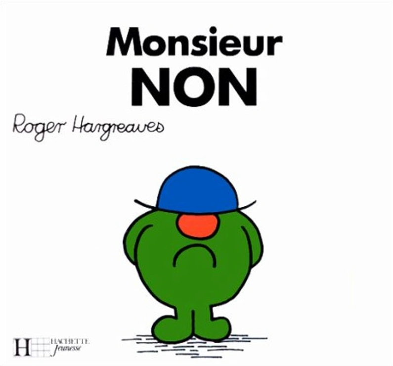 Mr. No[1]/Monsieur Non is a part of the Mr. Men series released by Roger Hargreaves.